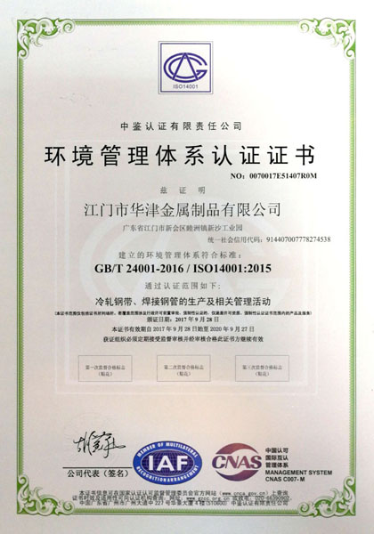 獲得ISO14001質量管理體系國內國際雙認證迄今為止,持續有效