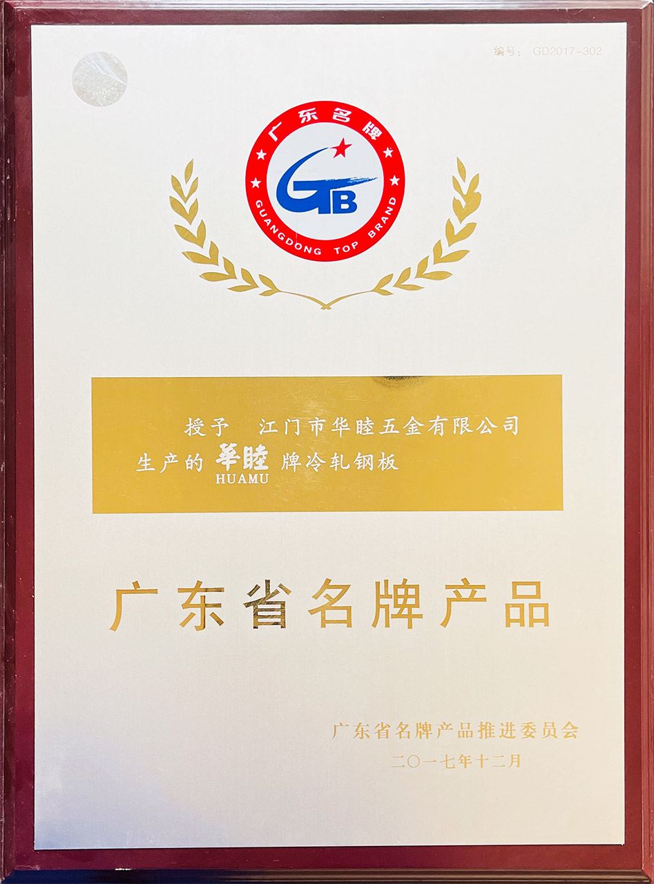 冷軋鋼板被認定為“2017年度廣東省名牌產品”